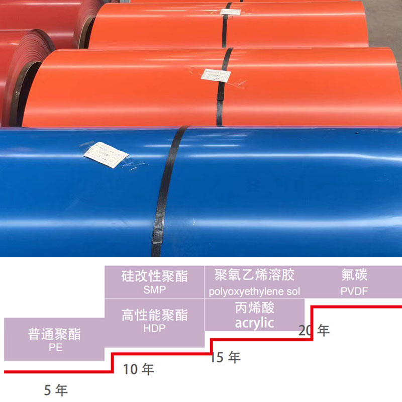 產(chǎn)品用途建筑、鋼窗、集裝箱、船用裝飾、家具、辦公。鍍層重量熱鍍鋁鋅基板鍍層厚度:20-30g/m2 (單面)。涂層結(jié)構(gòu)2/1:上表面涂二次,下表面涂一次, 烘烤二次,用于制作夾芯板。2/1M:上下表面各涂二次,烘烤二次,用于制作夾芯板和單板。2/2:上下表面各涂二次,烘烤二次,用于制作單板。涂層種類介紹:圖層類型shiy背面涂層厚度(μm)聚酯漆(PE)12-2052/1M12-2052/212-