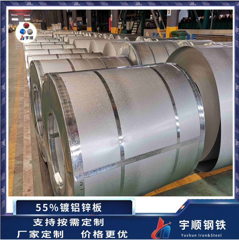 熱鍍鋁鋅板的耐蝕性是熱鍍鋅的2~5倍;高至490℃的溫度下連續或間接適用不會嚴重氧化或產生氧化鐵皮;反射熱和光的能力是熱鍍鋅鋼板的2倍,反射率大于0.75是節能的理想建筑材料;至于鍍層選擇熱鍍純鋅還是熱鍍鋁鋅,則主要取決于適用環境的酸堿度。純鋅在堿性介質中的表現優于鋁鋅合金,在酸性介質中的表現則相反。因此,推薦相對酸性環境中采用鍍鋁鋅彩涂,相對堿性環境則采用熱鍍純鋅彩涂,根據使用經驗,濕的木材、混凝土等不要長時間接觸鍍鋁鋅基板。