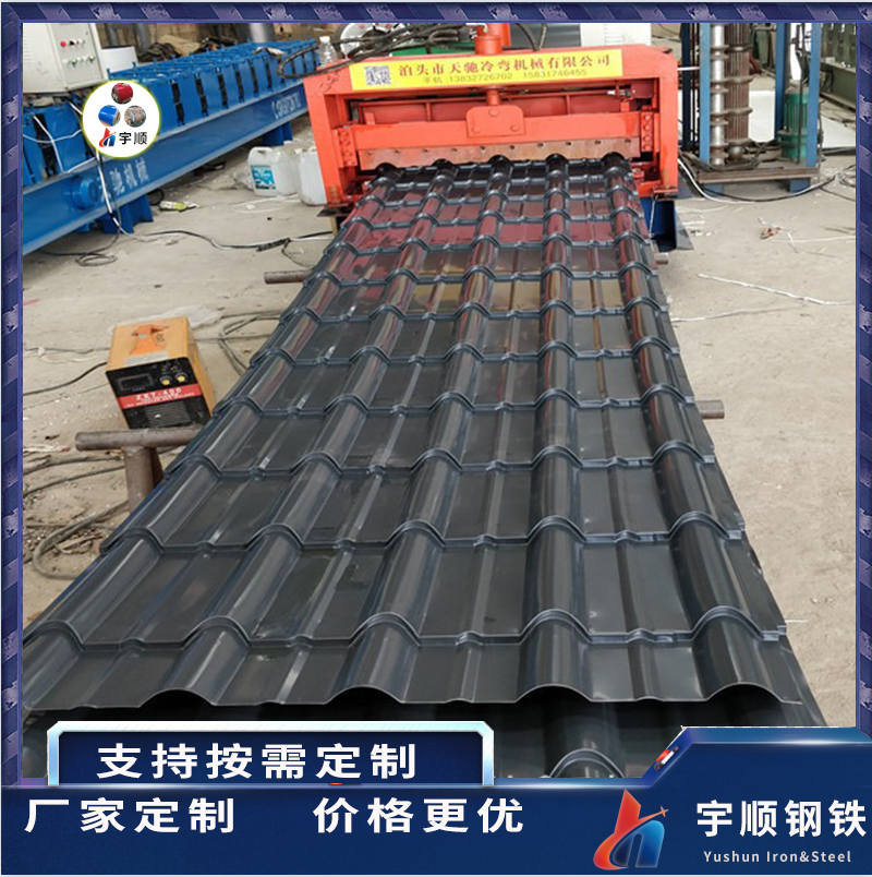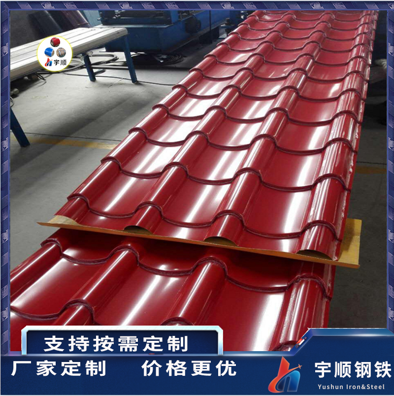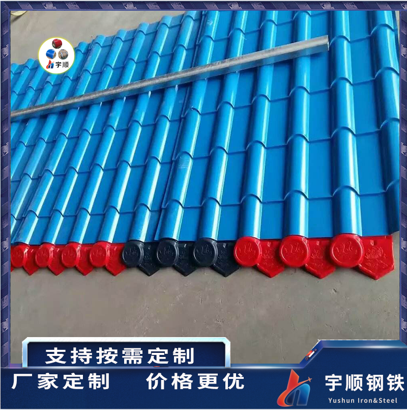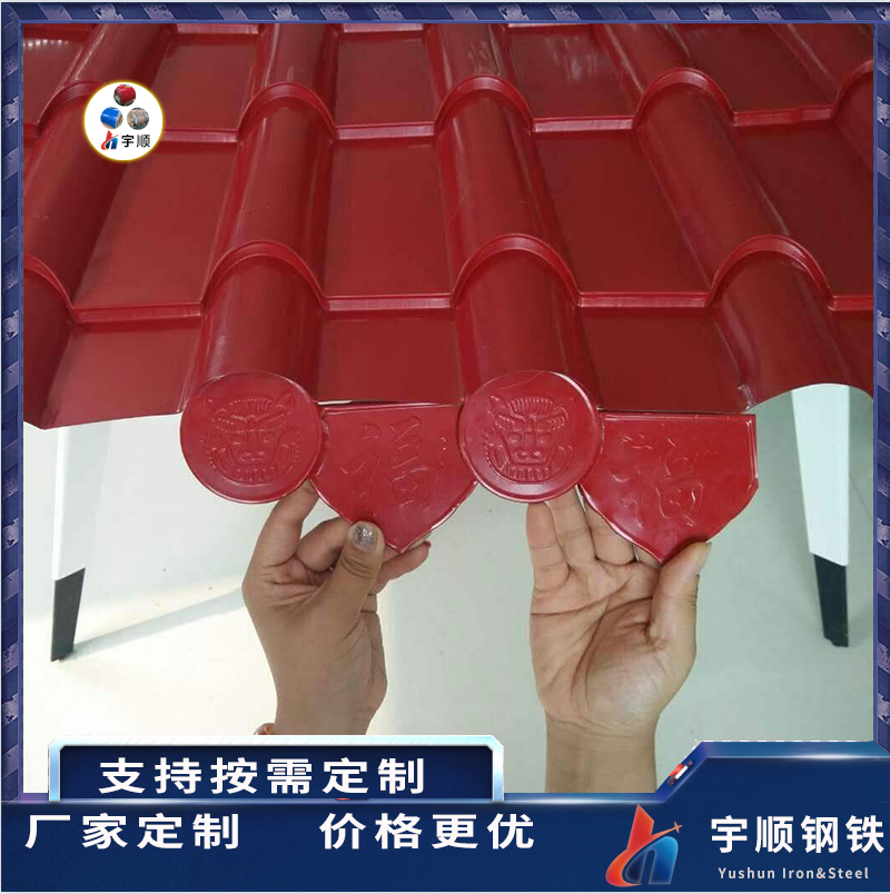 相對古老燒制的琉璃瓦而言,彩鋼仿古瓦拼裝組合的方式更自由,外觀更美觀,施工的速度更快捷。 仿古彩鋼琉璃瓦可廣泛用于歐式別墅,旅游風景區,海濱寓所,度假村,花園式工廠,家庭及各種建筑的室外裝飾。彩色壓型鋼板是采用彩色涂層鋼板,經輥壓冷彎成各種波型的壓型板,它適用于工業與民用建筑、倉庫、特種建筑、大跨度鋼結構房屋的屋面、墻面以及內外墻裝飾等,具有質輕、高強、色澤豐富、施工方便快捷、抗震、防火、防雨、壽命長、免維護等特點,彩鋼仿古瓦現已被廣泛推廣應用。